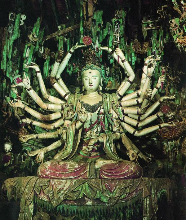 千手不雅音华好意思绝伦,多臂舒展、璎珞周身,色调历经数百年依旧璀璨 。殿内悬塑、壁塑重重叠叠,飞天、菩萨、服待东说念主杂沓有致,一步一景,满目惊艳。