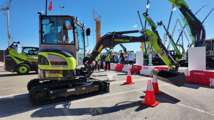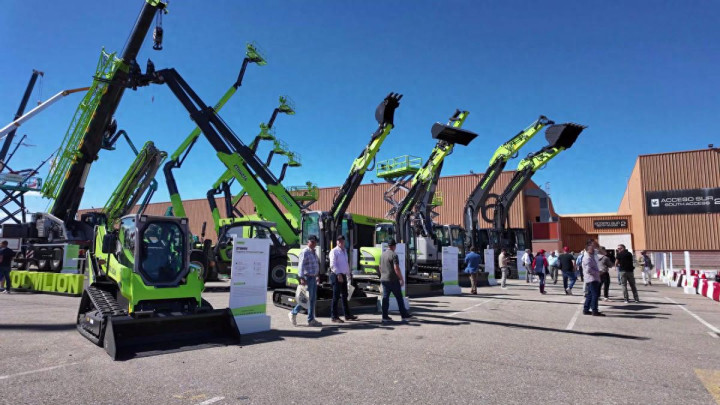 以中联重科土方机械为例。12款定制化明星居品悉数登场,涵盖初度面向西班牙展出的ZE210GLC、ZE335G、ZE500G中大吨位挖掘机,ZE20G到ZE145GU的多款紧凑型挖掘机以及ZS030R、ZT090V等滑移装载机,每一款王人凝合着对欧洲工况的深入归拢。