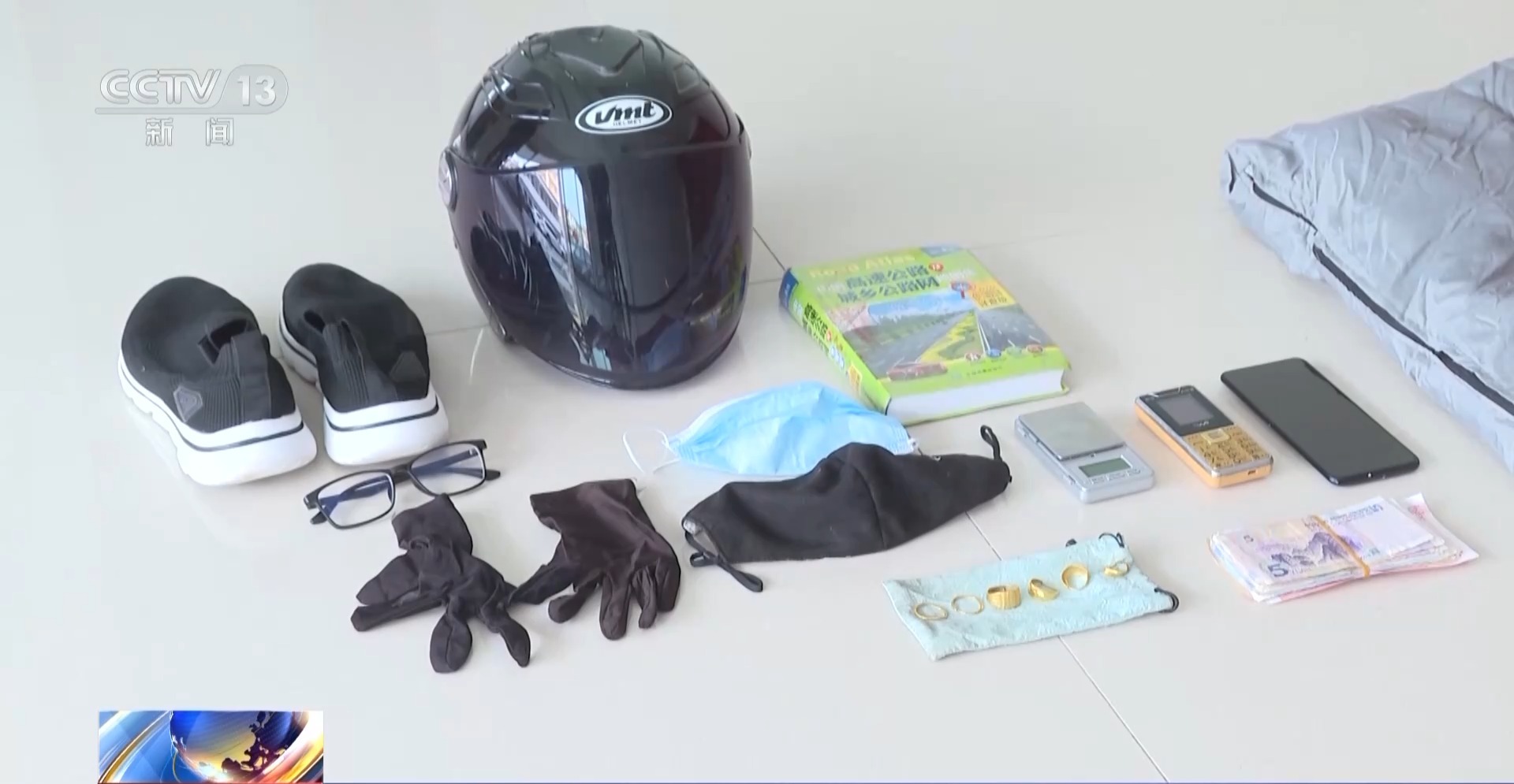 河南省项城市公安局刑侦大队二中队细密东谈主 王浩帆:现场缉获了九枚黄金饰品,还有作案的摩托车,伪装用的头盔,衣着睡袋等。