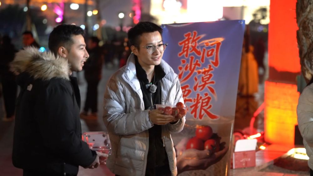 邻近立春的西安城里,太阳一落,唯有零下2摄氏度,他和同伴阿迪力·阿卜杜热合曼站在街头把握地跺着脚,找准时机就追着路东谈主去先容他们的农产物“喀柿红”。