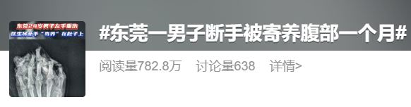 但将断手“寄养”在肚子上