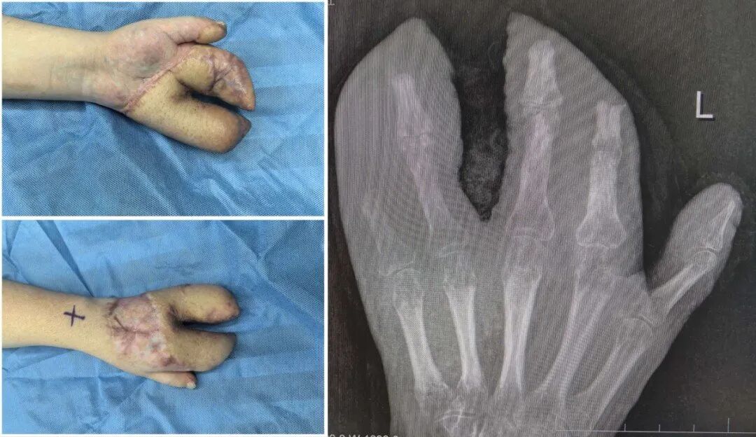恭候皮瓣绝对踏实后,医师们运行了功能重塑。手术将肥壮的皮瓣进行修薄塑形,并进行了初次分指术,把粘连在一齐的手指分开,同期取出了已愈合的骨折内固定物。