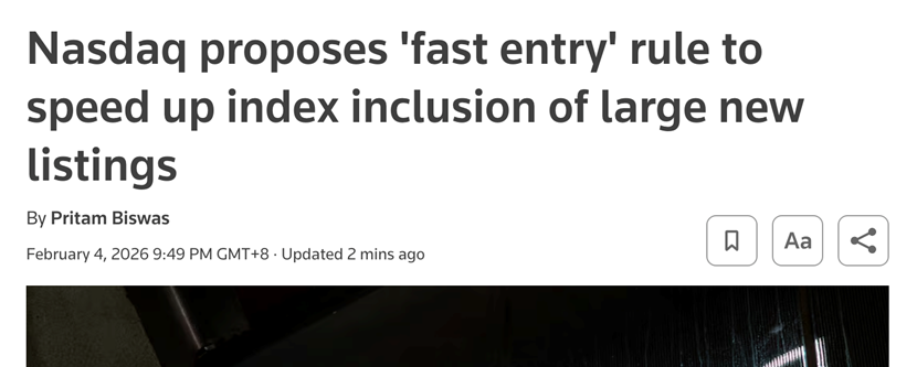 阐述纳斯达克拟议律例,市值踏进纳斯达克现存指数身分股前40名的新上市公司,将获取指数加速纳入资历。此类企业仅需提前至少五个交游日发出见告,在上市满15个交游日后便可纳入关系指数,同期还将罢职老例的上市时限与流动性关系条目。纳斯达克明确,通过该机制新纳入的身分股不会取代现驻足分股,而是暂时加多指数身分股数目,这一料理情势与分拆上市企业的纳入律例一致,待下一次年度身分股退换时再作念统筹。
