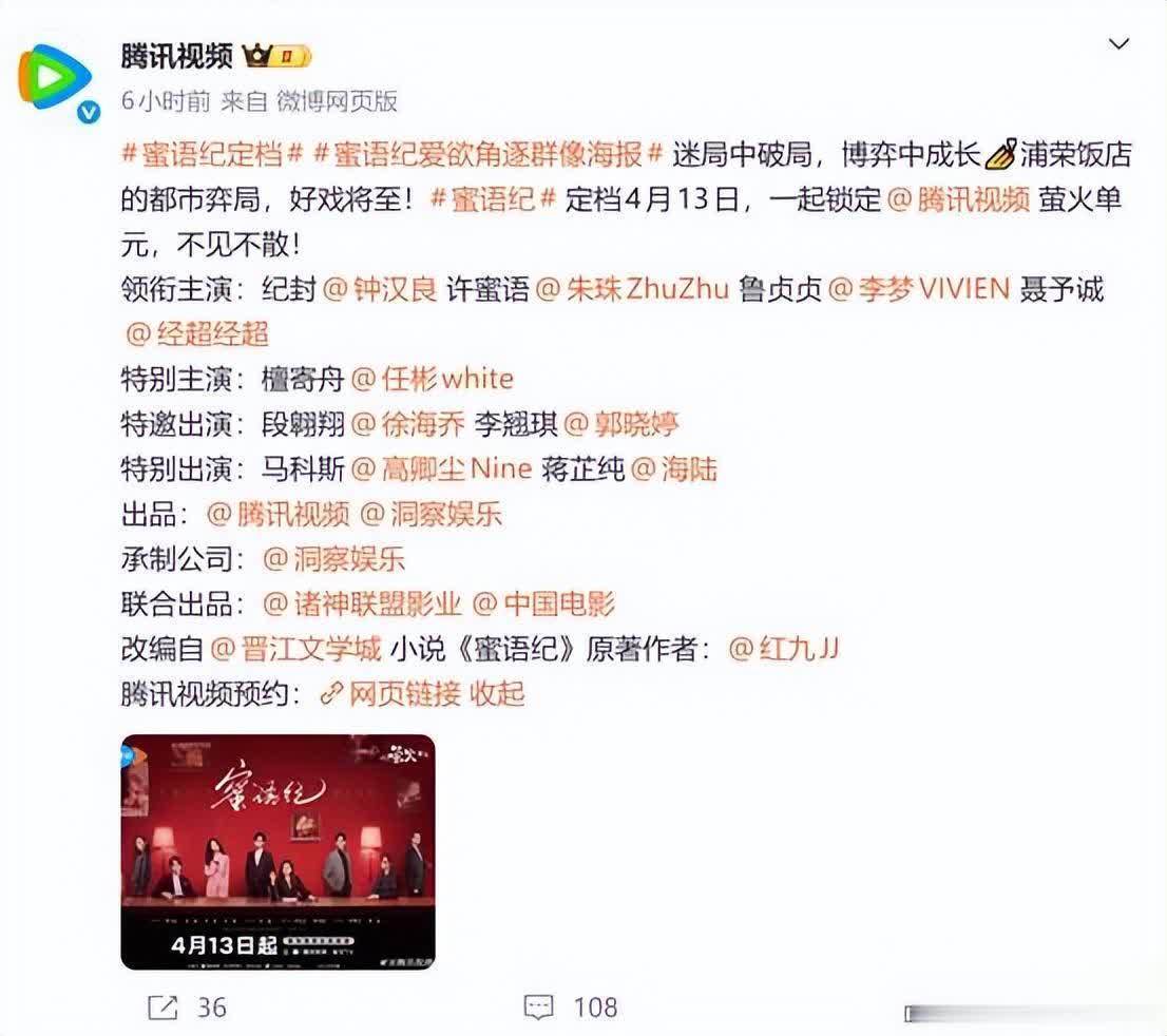 机不可失,鹅厂又拿出了一部王人市剧——《蜜语纪》官宣定档。