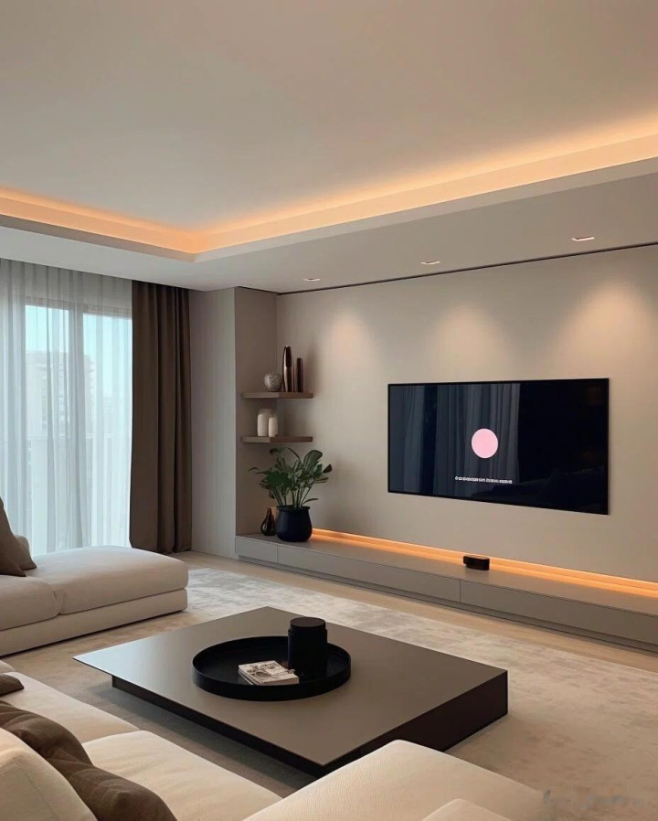 电视配景墙不错选拔检朴的悬空电视柜,既检朴大地空间,又加多了视觉上的细微感。在色调搭配上,黑白灰的经典组合,永不外时。玄色电视柜搭配白色墙面,再点缀一些木质元素,当然又不失温馨。