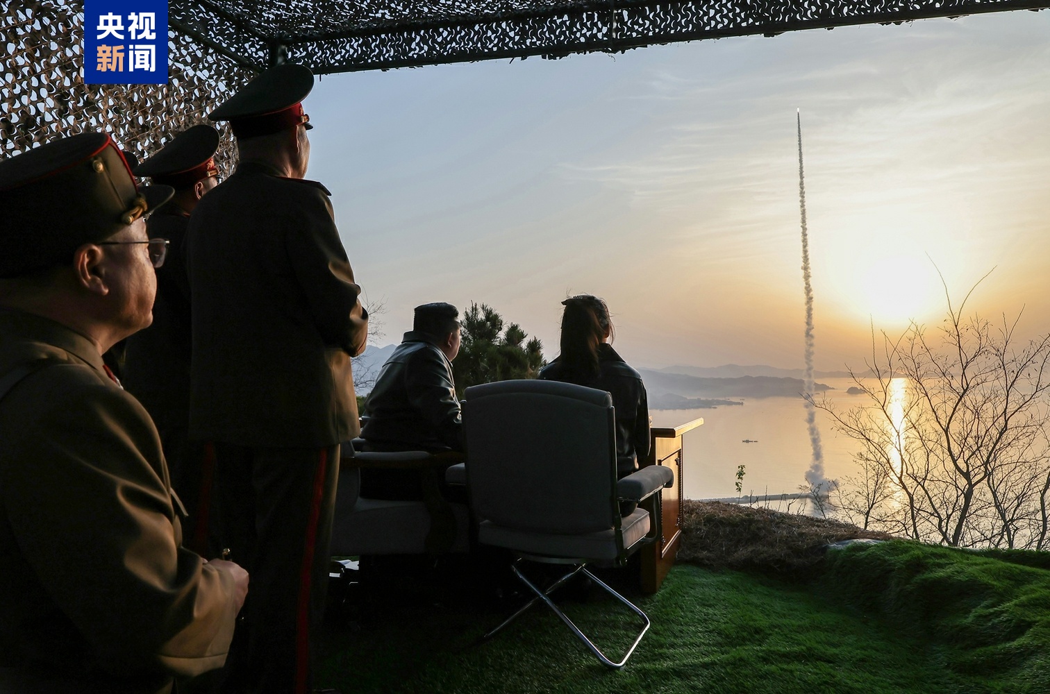 朝鲜处事党总通告、国务委员会委员长金正恩不雅摩试射。