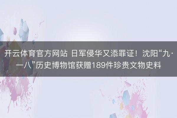 开云体育官方网站 日军侵华又添罪证!沈阳“九·一八”历史博物馆获赠189件珍贵文物史料