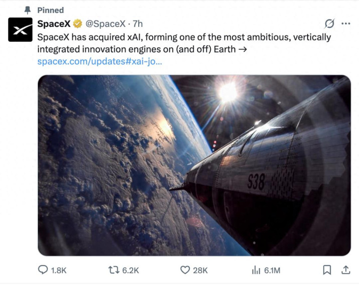 SpaceX收购xAI的传说很快造成了新闻,2月2号SpaceX认真告示收购xAI,收购价钱为2500亿好意思元。不外探究到这两个公司的实质甘休权齐在马斯克手上,是以这更多是里面的股权结构变嫌。收购xAI之后,SpaceX的估值达到1.25万亿好意思元,上市之后市值应该还会更高。