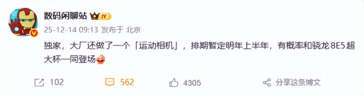 大疆Pocket强敌!vivo官方初度阐发旗下首款vlog相机已立项,有望在本年和vivo X300 Ultra同期登场。改日,跟着荣耀、vivo等手机行业新玩家的加入,手抓云台相机阛阓有望迎来更热烈的竞争,最终鼓吹总共便携影像行业向更专科、更智能、更和会的标的演进。
