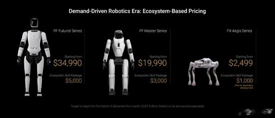 贾跃亭称,FF发布三大系列EAI机器东说念主:Futurist系列是全尺寸作事型具身智能东说念主形机器东说念主;Master系列是灵通型具身智能东说念主型机器东说念主;Aegis系列是安防和伴随型专科四足具身智能机器东说念主。发文配图涌现,Futurist系列机器东说念主订价34990好意思元起,Master系列机器东说念主订价19990好意思元起,Aegis系列机器东说念主订价2499好意思元起。