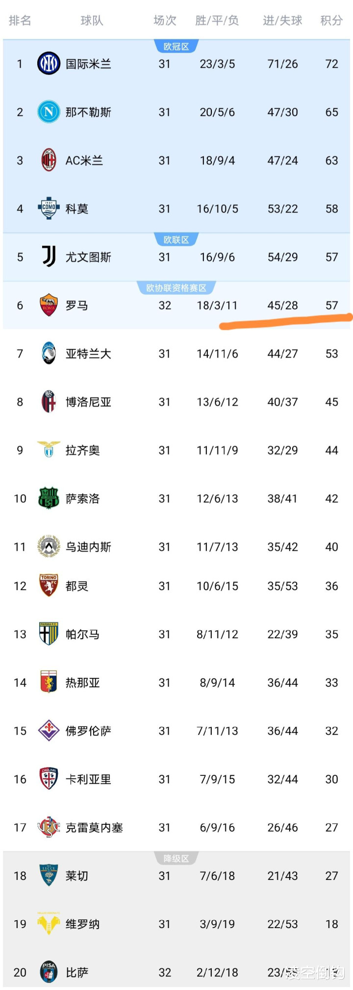 赛后意甲积分榜发生变化,咱们不错看到罗马积分高涨到了57分,继续排行第6,积分追平了尤文图斯队,而比萨积分停留在18分,继续垫底。不错看到意甲争四尖锐化!