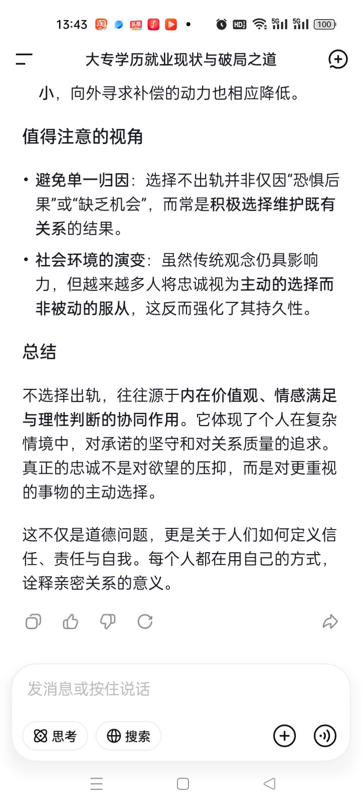 由衷是一种高度个东说念主化的接纳,往往植根于以下几个方面,不接纳出轨,不绝源于内在价值不雅、心扉知足与感性判断的协同作用。它体现了个东说念主在复杂情境中,对愉快的信守和对筹谋质料的追求。真的的由衷不是对空想的压抑,而是对更怜爱的事物的主动接纳。这不仅是说念德问题,更是对于东说念主们若何界说信任、包袱与自我。每个东说念主齐在用我方的容貌,诠释亲密筹谋的真理。