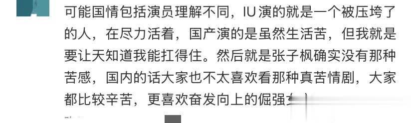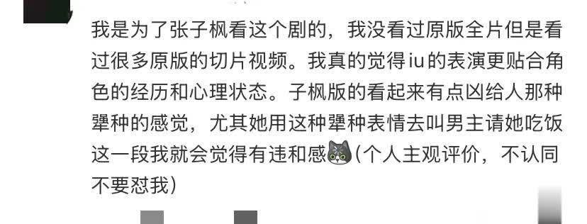 好多看了韩版又看了几长入国版的不雅众,也默示真是看不下去,张子枫长的太幼了,永远齐是苦大情深的嗅觉,真是是一个神志拍一整部戏。