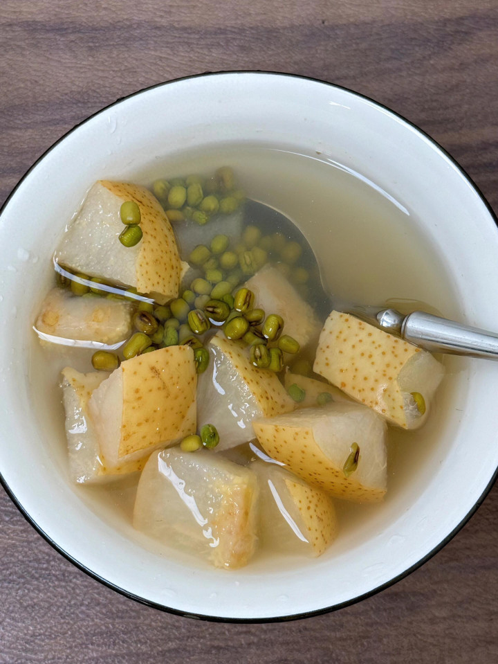 千万记着,绿豆不可提前泡,也都备不可煮到着花。一朝煮着花了,解怒气的阿谁“气”就散了,适度大打扣头。这锅汤煮出来,汤色是澄清的,带着梨的甜润和一股浅浅的豆香。