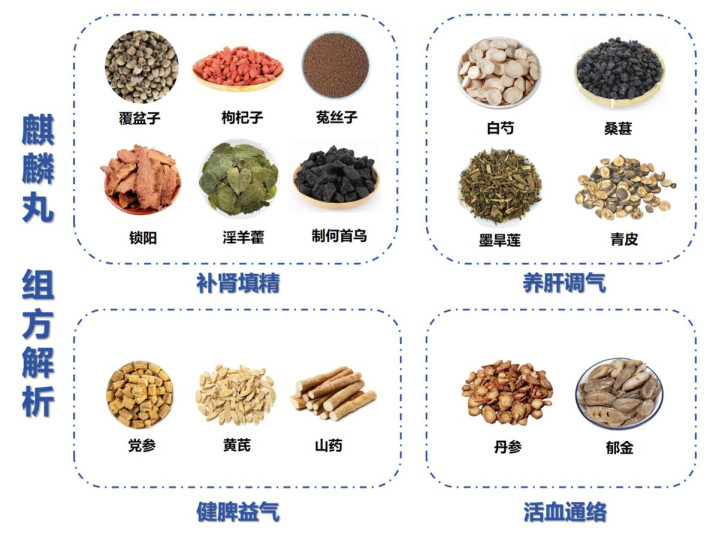 在稠密兼顾肝脾肾同调的中成药中,麒麟丸是经典代表。它接收古方精华,并展现出更抽象的当代安详想维。其组方逻辑体现了中医“精血同源”、“肝脾肾探讨”以及“阴阳互根”的经典表面,且部分要素已有当代药理学盘考佐证。