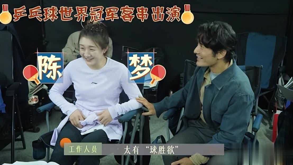 黄晓明上一秒打法陈梦开拍后收敛一下我方的输赢欲,下一秒我方赢过一球,就蓬勃得将心思写在脸上,还现场效法起陈梦比赛赢球后的庆祝当作。