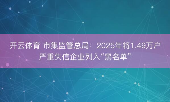 开云体育 市集监管总局:2025年将1.49万户严重失信企业列入“黑名单”